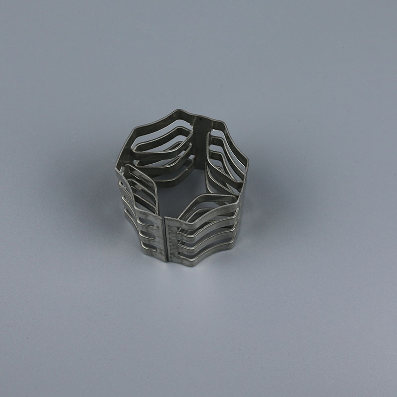 金屬八四內(nèi)弧環(huán)填料,它類似花環(huán)開關(guān)的金屬填料,也稱麥勒環(huán)填料。它的特點是環(huán)壁開敞面積大,所以具有通量大、阻力小和傳質(zhì)等特點。金屬填料八四內(nèi)弧環(huán),是以碳鋼、不銹鋼及鋁合金等材料制成的。應用于石化、化肥、化工、環(huán)保、制藥、制糖等行業(yè)的填料塔中。