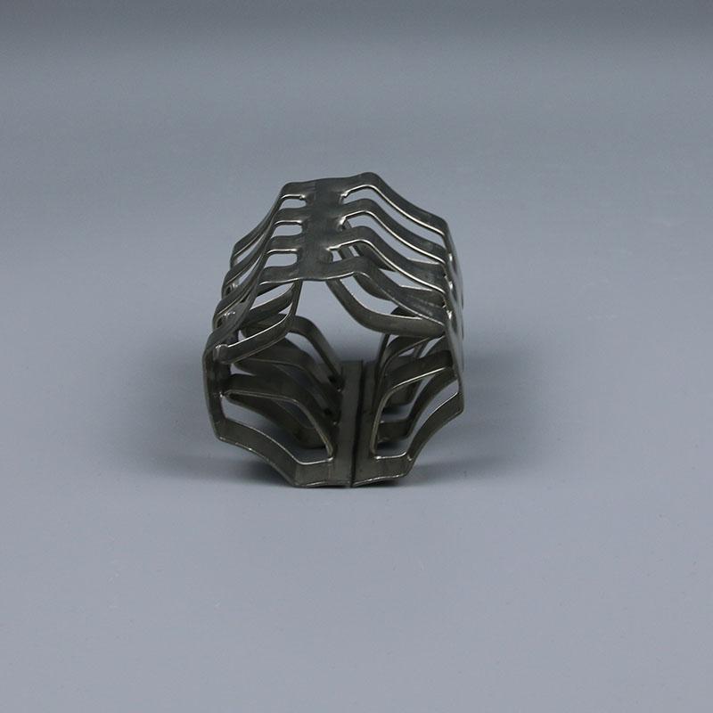 金屬八四內(nèi)弧環(huán)填料,該填料在填裝時排列規(guī)則趨于規(guī)整化,具有規(guī)整填料的效應,并具有高傳質(zhì)效率,和較低的阻力降,可廣泛用于各種操作條件下的蒸餾,吸收,氣提、萃取等傳質(zhì)操作。工業(yè)上,由于填料塔結(jié)構(gòu)簡單,操作方便而得到了廣泛應用,其核心構(gòu)件填料也因此而得到了廣泛的研究.